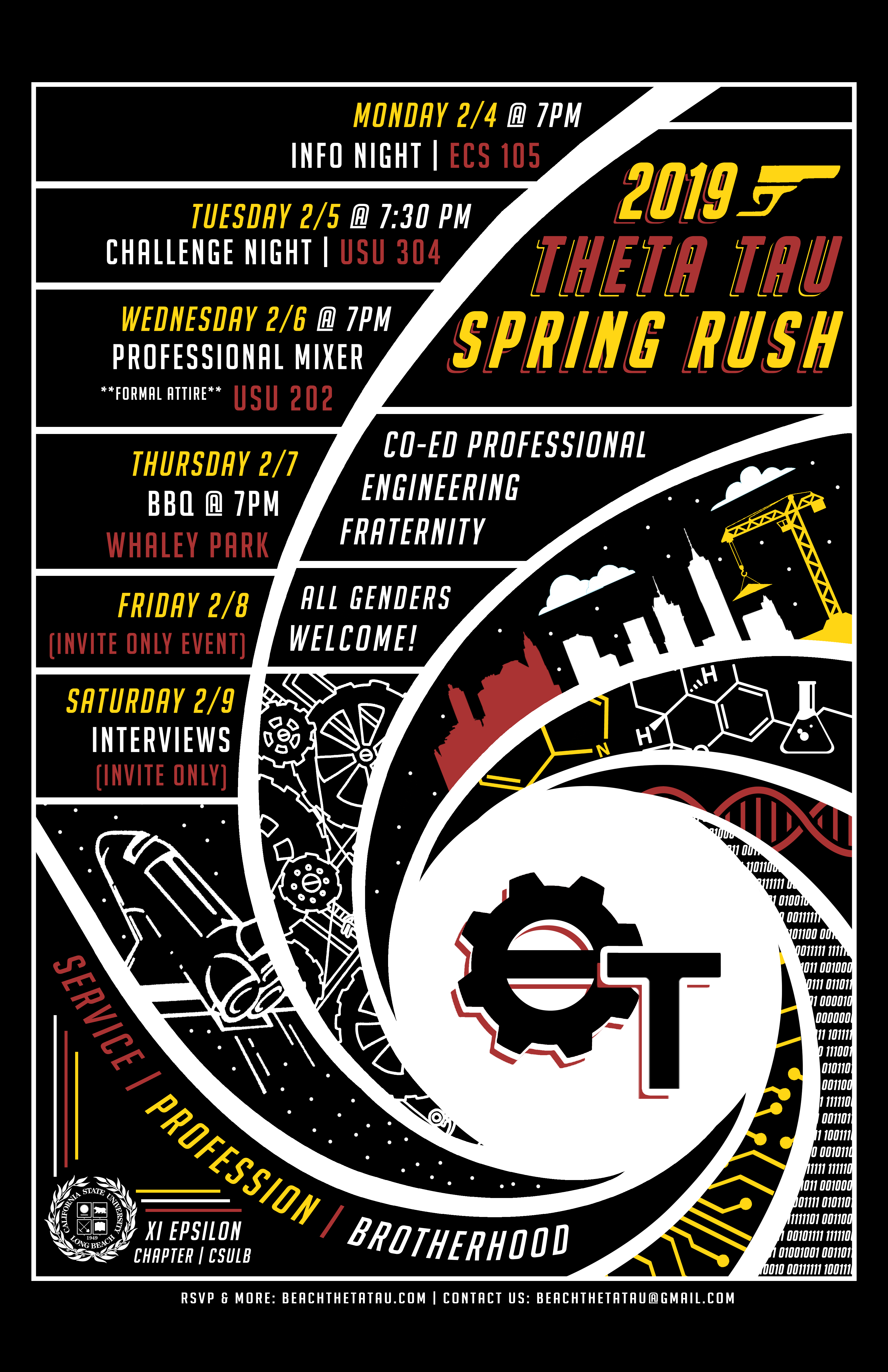 Each semester, Theta Tau actively recruits new members to join the ranks of dedicated engineers who strive to better themselves academically, professional, and as a person in general.