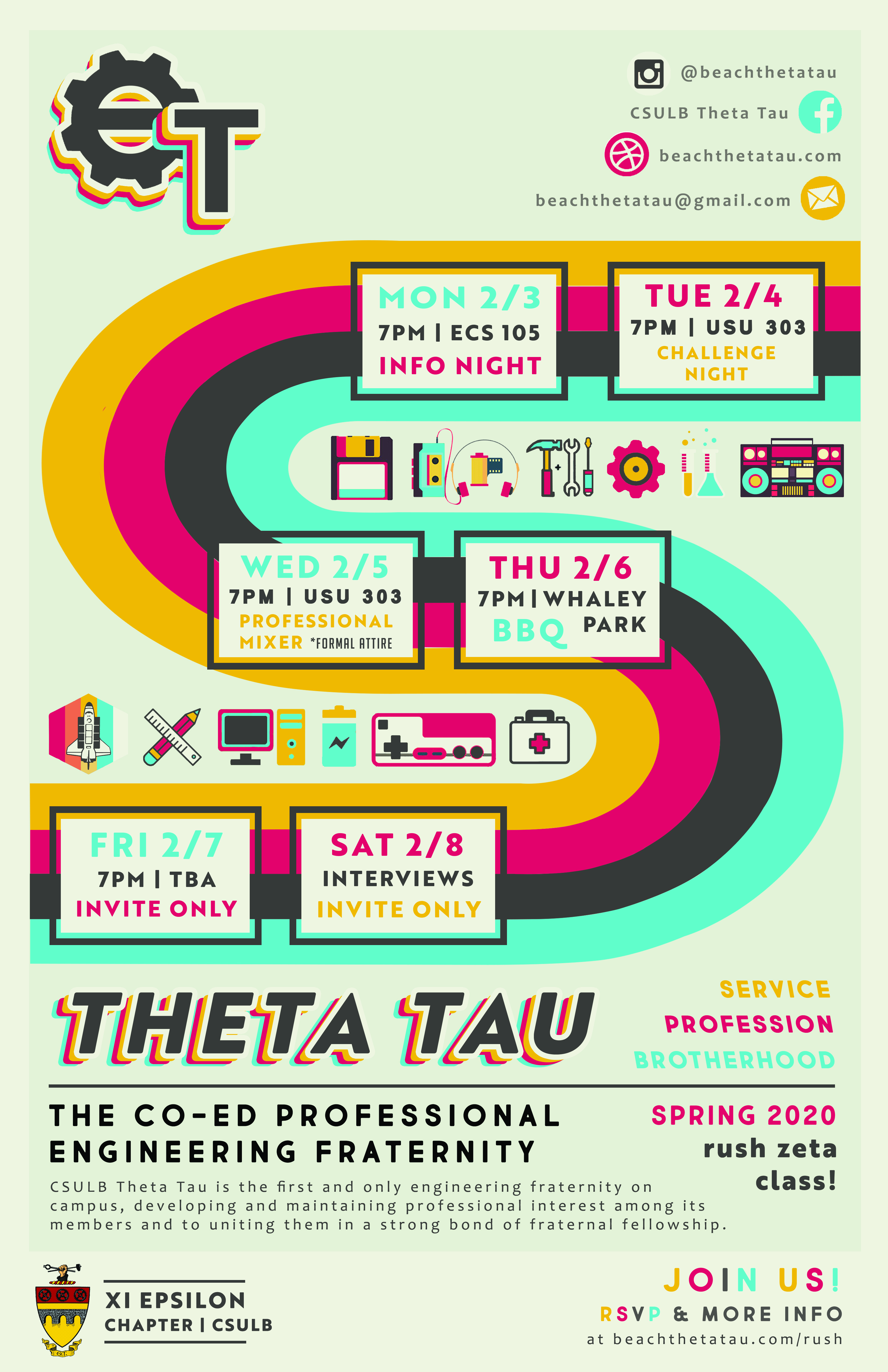 Theta Tau is the Nation’s largest and foremost professional engineering fraternity. At Cal State University Long Beach, Theta Tau is one of the most active institutions on campus.